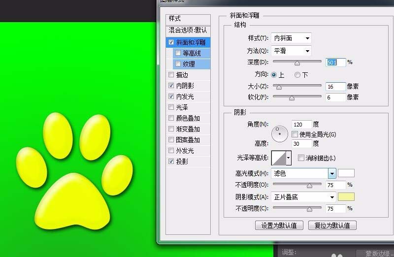 6、图层样式>斜面浮雕