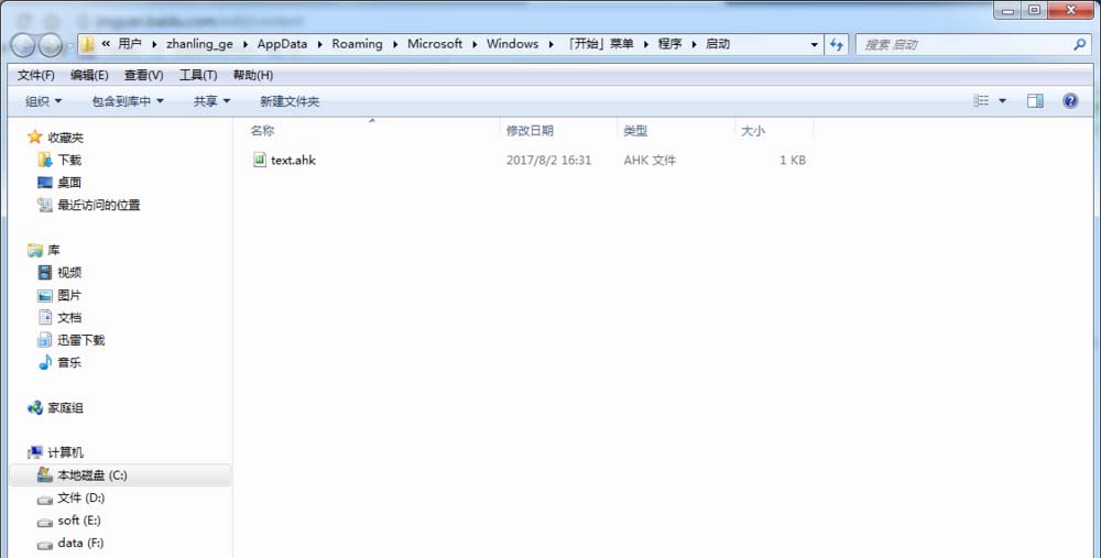 4、复制text.ahk到电脑开始里的启动文件夹里。