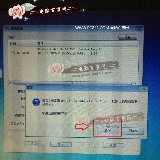 4)接下来会弹出一个提示框,主要是提示您,即将在Win10预览版镜像写入U盘,并且提示您,写入U盘之前会对U盘进行格式化,请注意备份数据。由于前面笔者已经备份过之前的U盘上的重要数据,因此直接点击【是】即可,如下图所示: