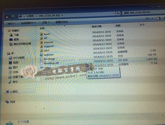 6)最后我们可以进入我的电脑中的U盘中查看,之后可以看到U盘容量已经使用了很多容量,并且里面已经写入了一些系统准备安装文件,如下图所示。