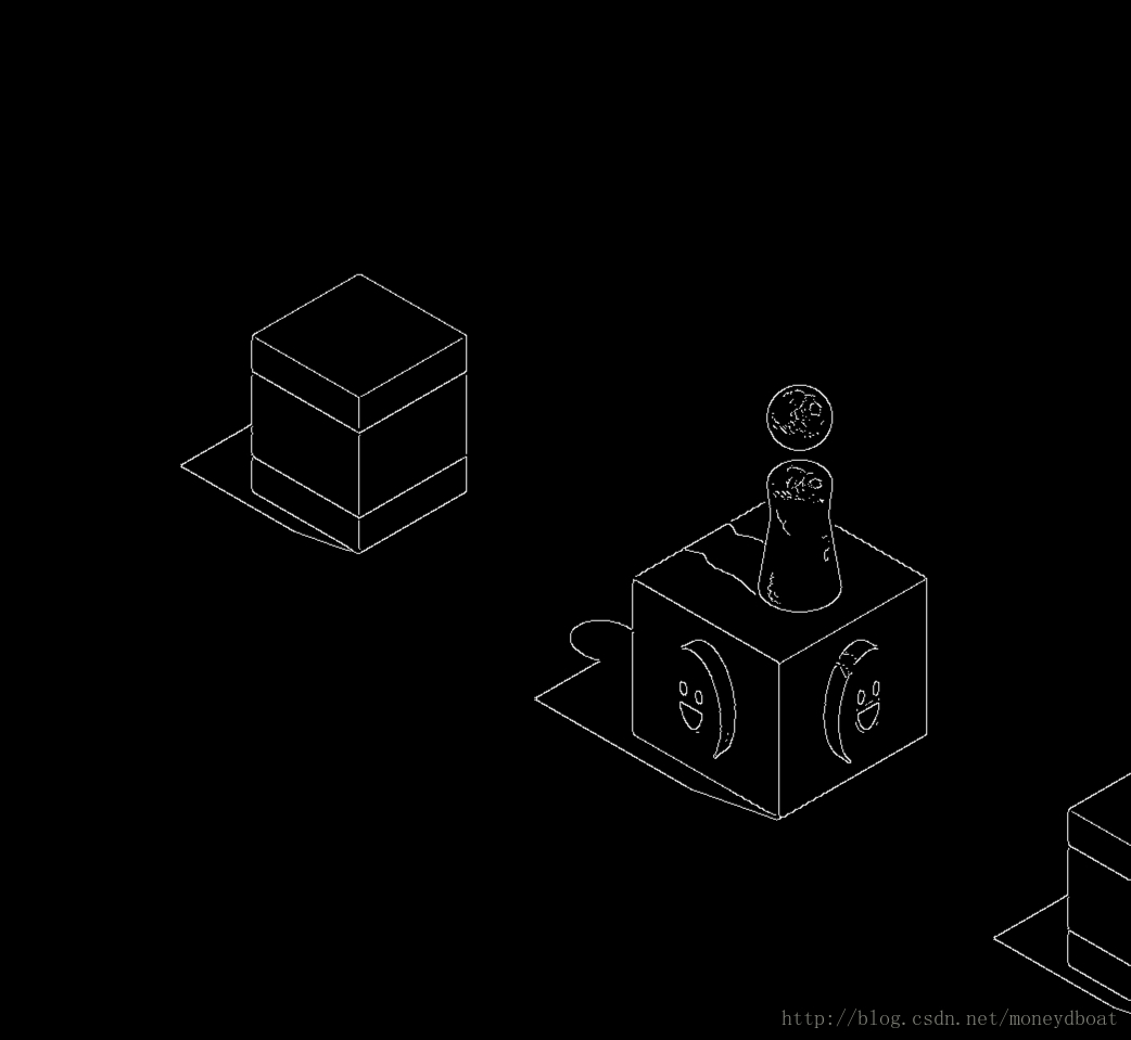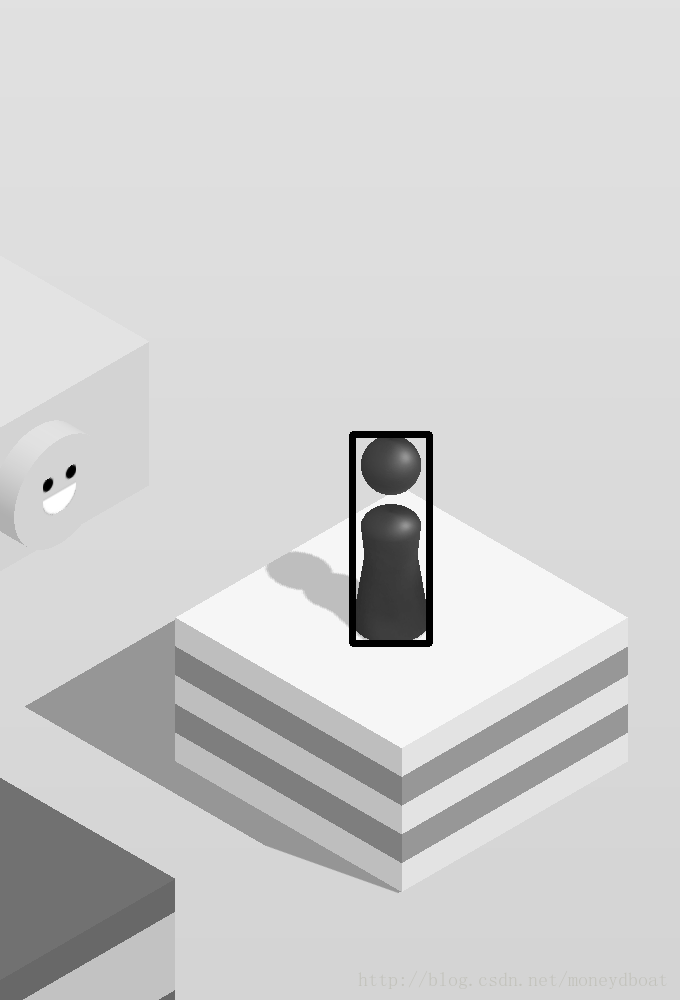 跳一跳的画面很简洁,所以边缘检测的效果很好。检测出边缘后,从上至下扫描图片就能找到下一个物块的大致位置。