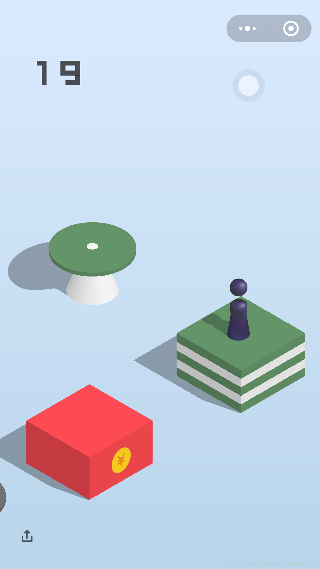 观察到小人跳到物块中心之后,下一个物块中心就会出现白色小圆点,同样可以匹配图中白色小圆点,从而获得跳跃目标点的坐标,计算跳跃的距离。