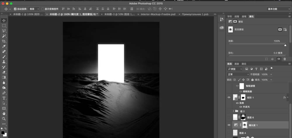 3、使用曝光度工具压暗背景。