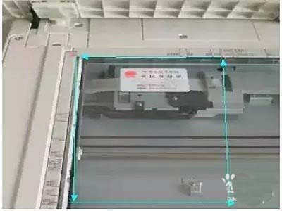 8、将身份证正面朝下,放在复印机上。放置的位置,如图所示,A4纸的上端中间。