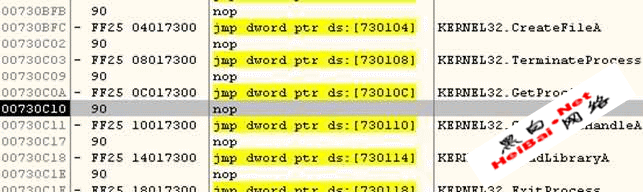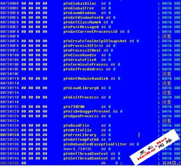 注意函数名及指针与7339A9附近的代码并不完全对应。有的函数名或指针在别处。