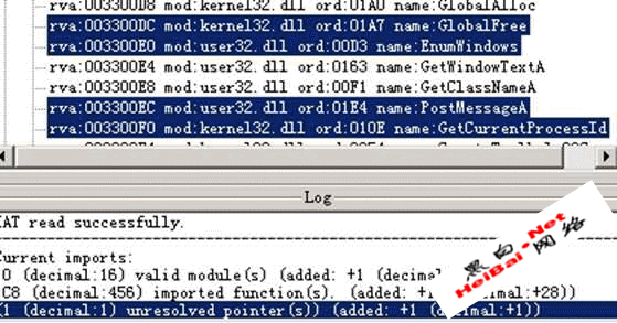 如果用ImportRec把这部分也取出来,属于不同dll的api混排了,ImportRec不能处理。