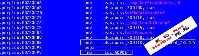 原来在壳代码import的4个API,从主程序的IAT直接取。结束处理后跳回前面的OEP 409DE4。用pushad,pushad保存寄存器值。