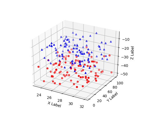 ax.scatter(xs, ys, zs, c=c, marker=m)