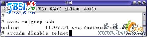 solaris10使用的ssh服务器是opensshd,当然也有付费的商业版本的sshd出售。就目前的情况看来,openssh已经在你安装操作系统的时候默认安装在系统上了,而且这个服务会随系统自动运行。可以使用命令svcs查看ssh是否正常运行,如图2 如果已经正常运行可以关闭不安全的telnet服务。