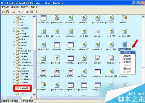5.可以到相同的操作系统中复制(Ctrl+C)、黏贴(Ctrl+V)到system32目录文件夹即可。如果已有系统镜像的备份(可以不求人),也可使用镜像浏览器,打开备份的镜像文件,依次找到动态链文件:Windows→system32→pngfilt.dll→提取,然后覆盖毁损的文件即可。