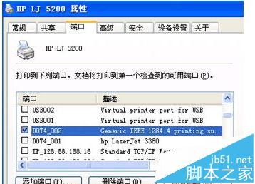 8、像第一步那样的步骤,打开打印机的属性对话框。选择“端口”,重新选择USB端口就万事大吉了。(如下图所示)
