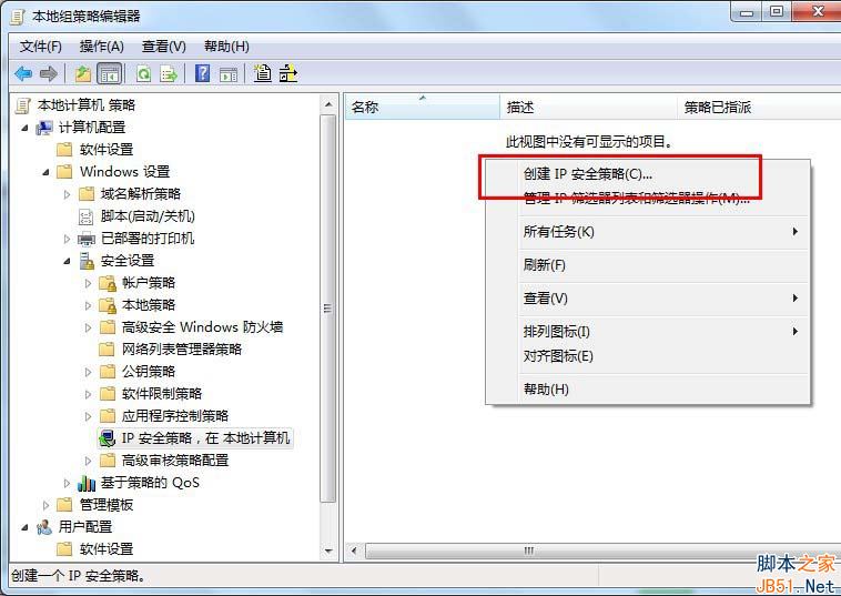 1、在“开始”菜单选择“运行”,输入“gpedit.msc”后回车,打开本地组策略编辑器。依次展开“计算机配置---windows设置---安全设置---ip安全策略,在 本地计算机”。