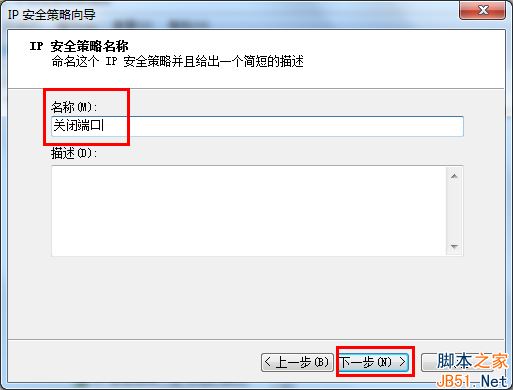 2、在本地组策略编辑器右边空白处 右键单击鼠标,选择“创建IP安全策略”,弹出IP安全策略向导对话框,单击下一步;在出现的对话框中的名称处写“关闭端口”(可随意填写),点击下一步;对话框中的“激活默认响应规则”选项不要勾选,然后单击下一步;勾选“编辑属性”,单击完成。