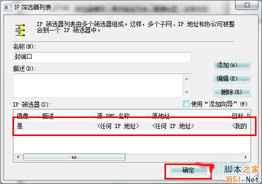 7、返回到“ip筛选器列表”,点击“确定”。返回到“新规则 属性”对话框
