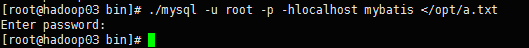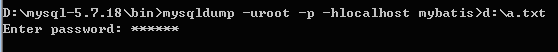 将d:\a.txt拷贝到slave上,然后导入到mysql数据库中,slave上的mybatis数据库不存在则先创建,然后再导入