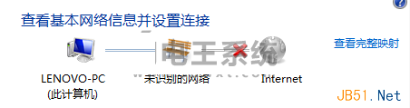网络连接出现黄色感叹号后,打开网络与控制中心会查看到如下提示: