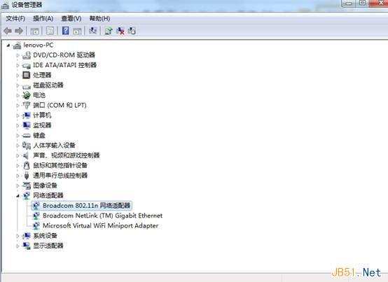 打开计算机---打开控制面板—硬件和声音—-设备管理器点击网络适配器--