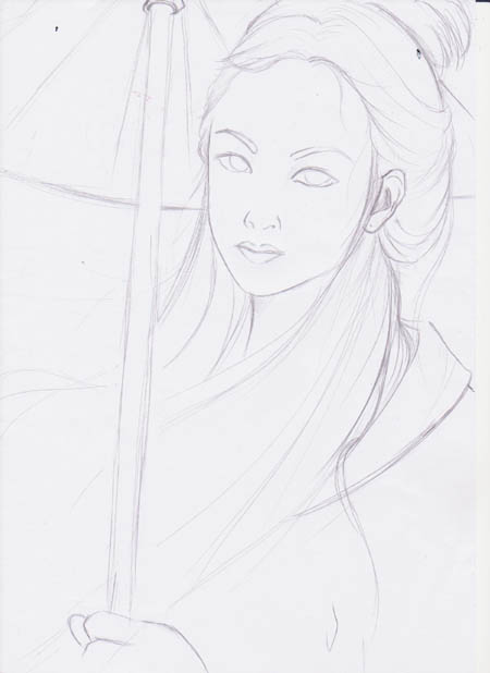 1、新建一个大小适当的文档,先画出线稿,如下图。