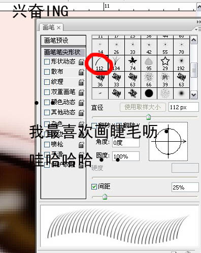12、选择画笔工具,在笔刷面板选择112笔刷,参数设置如下图。