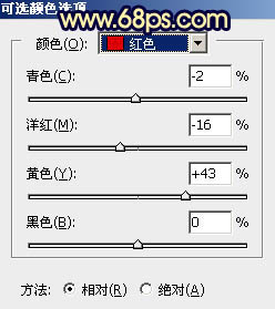 3、创建可选颜色调整图层,对红、黄、中性、黑进行调整,参数设置如图6 - 9,效果如图10。这一步给图片增加橙黄色。