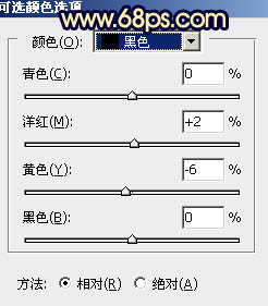 1、打开素材图片,创建可选颜色调整图层,对绿色,黑色进行调整,参数及效果如下图。这一步把图片中的绿色转为黄褐色,并给暗部增加蓝色。