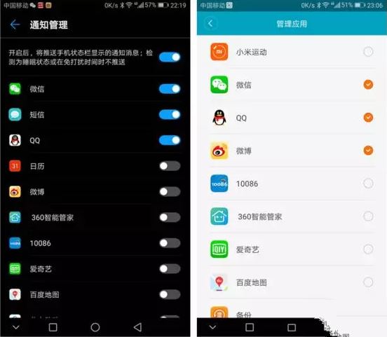 适配手机后,二者都支持微信,QQ,短信,邮件,日历、闹钟等通知信息内容直接显示。