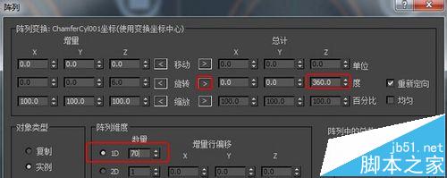 9、确认视图中的线形为选择状态,选择3DsMax2013菜单栏:“工具”-“阵列”命令,在弹出的“阵列”对话框中设置阵列参数,单击“确定”按钮,如图所示。