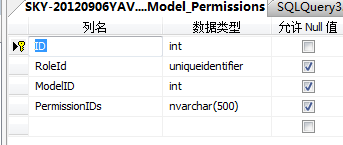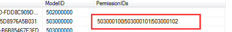 再就是角色与菜单的关系表,其中PermissionIDs字段为操作权限以|隔开。