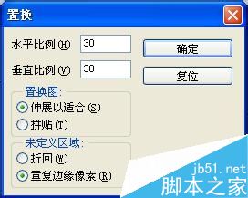 执行滤镜-扭曲-置换,参数设置水平比例和垂直比例均为30(数值越大,马赛克拼贴效果越强),选择伸展以适合,勾选重复边缘像素,点击确定弹出“选择一个置换图”的对话框,这是选择前面保存的“马赛克”PSD文件即可。