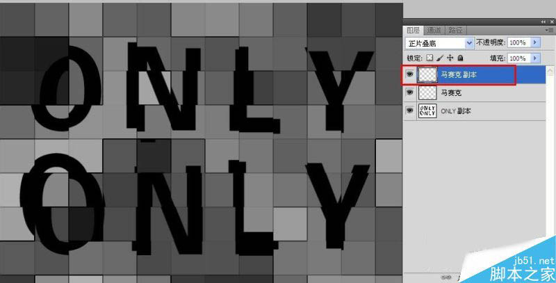 将“马赛克”图层显示,选择图层模式为“正片叠底”。