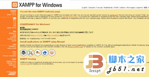 (3)点击“中文”访问:http://localhost/xampp/index.php ,出现以下页面,基本完成了xampp的安装了。