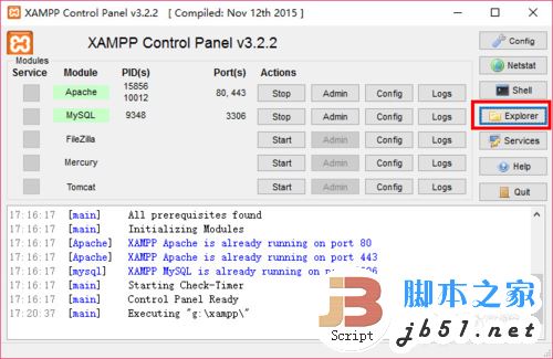 Apache和MySQL正常启动后,点击Explorer,进入服务器目录