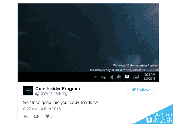 今天早些时候,@Core Insider Program 给出了Build 14257的桌面带水印截图,并说“目前看来一切顺利,内测用户们准备好了吗?”