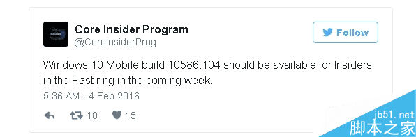 另外,同样来自这位爆料人士,移动端Windows 10 Mobile也有望迎来Build 10586.104(目前是.71),对,继续测试、改进、完善……