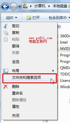 第1步:找到开始菜单中的《计算机》,在打开的计算机中找到工具栏中的《组织>文件夹和搜索选项》单击项。