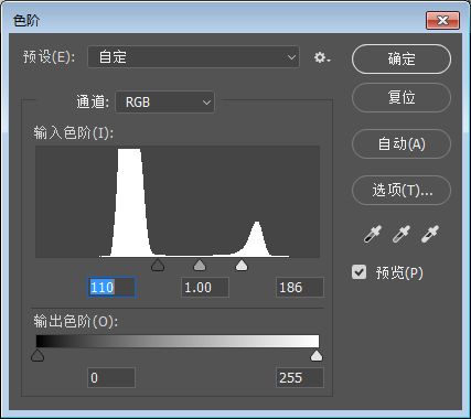 再Ctrl+L 调色阶,将灰色部分变黑,将白的部分更白,如图