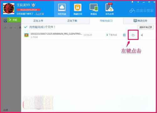 系统镜像文件下载成功,点击如图所示图标打开文件保存的文件夹;