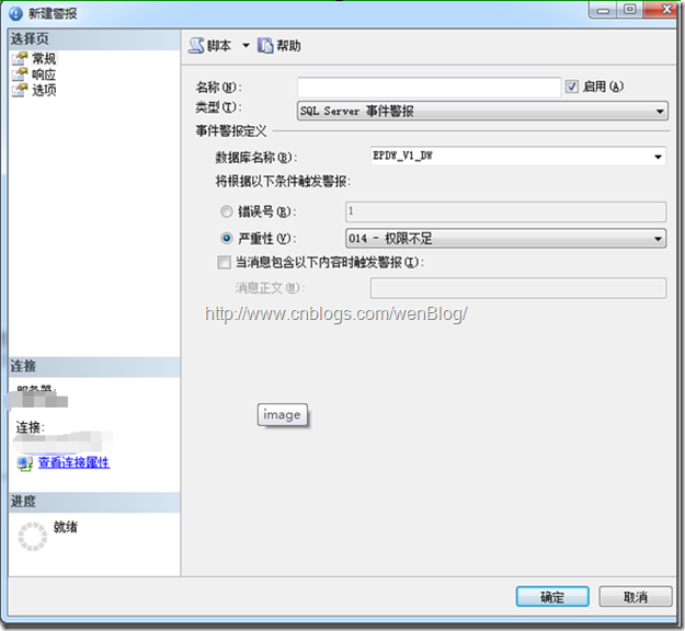 可以选择警报类型,针对数据库和严重性中选择监测内容比如权限不足,当发生权限不足时报警: