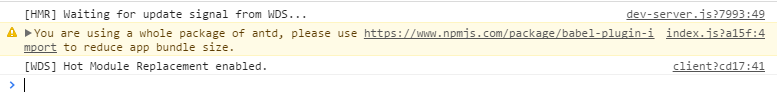 不推荐这种方式,因为这种方式会引入antd下的所有模块,这会影响应用的网络性能,并且打包后生成的文件体积会明显增大。且浏览器应该会弹出如下的警告: