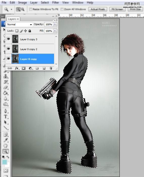 10.按Ctrl +单击“绿副本”通道,接着将图层调色板, 进入选择“>反向, 按CTRL + SHIFT键 + 左键 选择最底端的层和复制。
