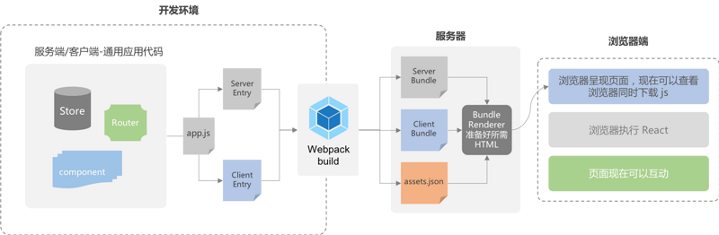 - 资源映射文件 assets.json 则是,服务器 bundle 在准备所需 HTML,需要预插入那些模块(chunk)js,和CSS,这只是提高用户体验。