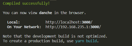 4、终端出现如下界面表示启动成功,并在浏览器中输入http://localhost:3000/即可看到react的初始页面