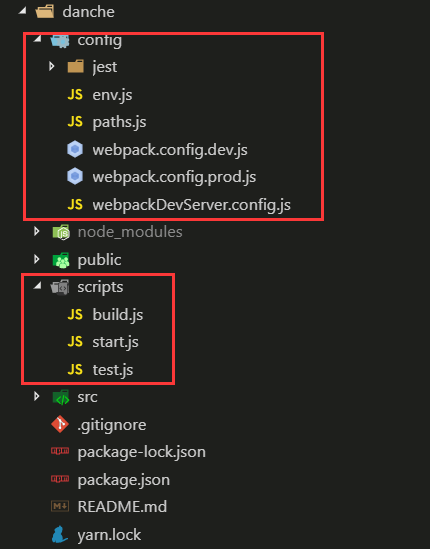 安装完成之后该怎么配置呢?这时需要通过webpack来配置less-loader,但是我们在上面的目录结构中似乎并没有发现webpack.config.js文件,这是因为脚手架为了实现“零配置”,会默认把一些通用的脚本和配置集成到 react-scripts,目的是让我们专注于src目录下的开发工作,不再操心环境配置。同时,被其集成的脚本和配置也会从程序目录中消失 ,程序目录也会变得干净许多