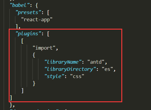 注意: 这里babel配置项是需要通过yarn eject暴露出来才会有,原本的package.json是没有这个配置项的