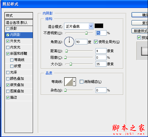 9、新建一个图层,再画一个小一点的圆,填充黑色,设置图层样式和效果如下