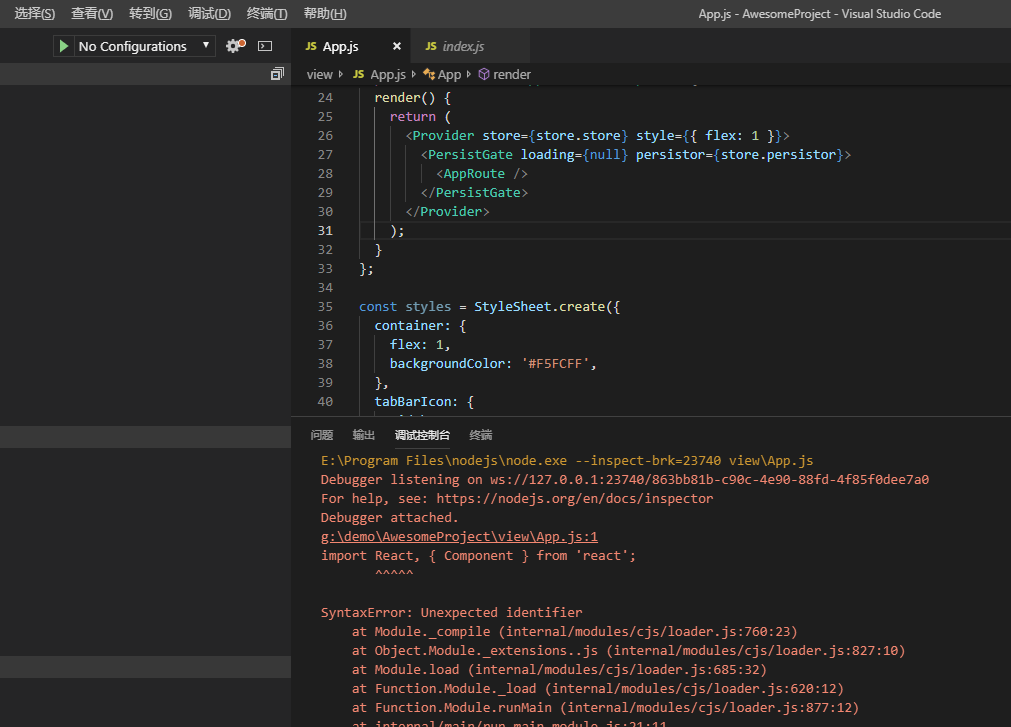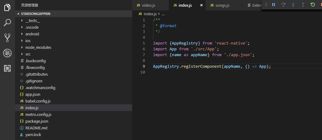 创建的react-native的工程拖入vscode中