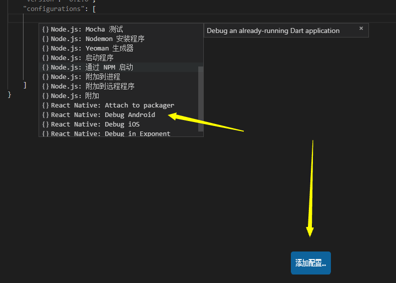 然后点击添加配置,选择debug android