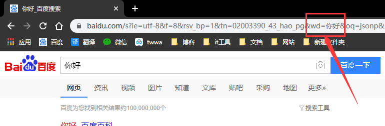 日常百度搜索都有wd属性,改变wd属性即可得到搜索