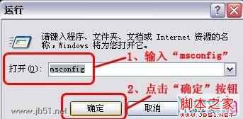 1、在Windows启动后,点击“开始”→“运行”菜单项,在“打开”栏中键入msconfig,然后按“确定”键;