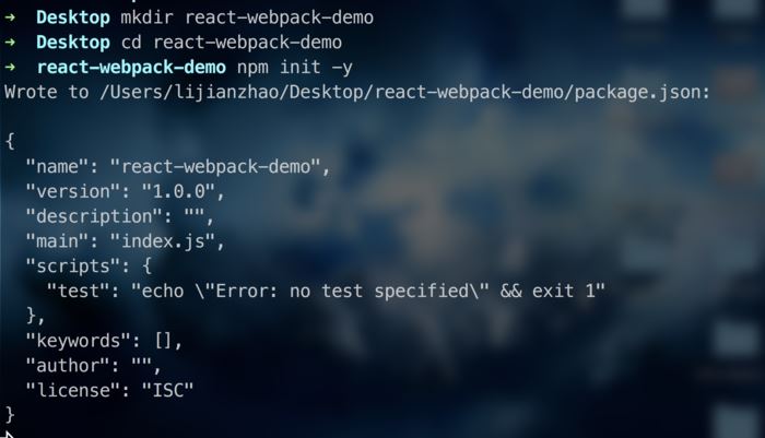 mkdir react-webpack-demo cd react-webpack-demo npm init -y